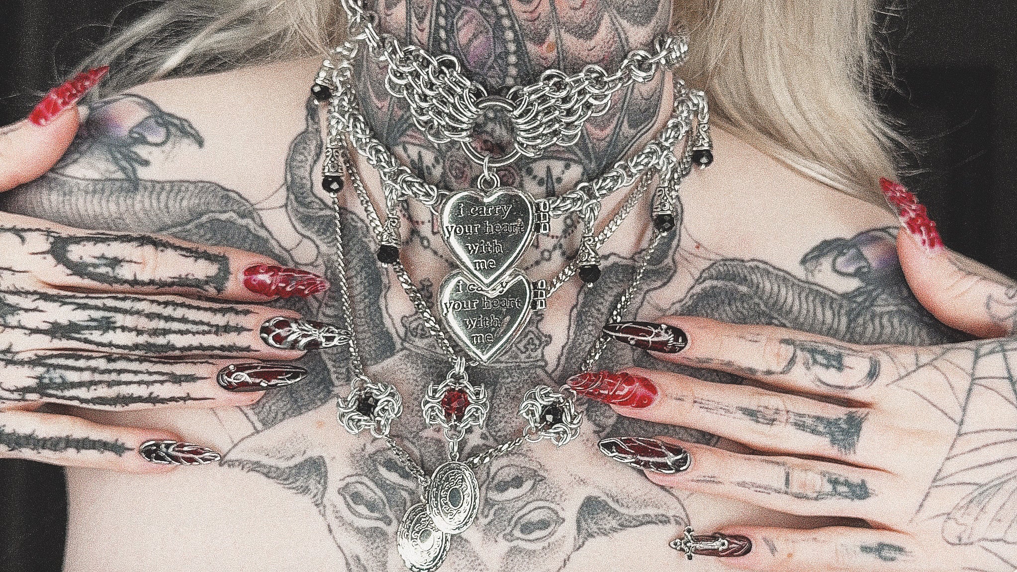 OOAK ‘I carry your heart with me” Locket Chainmail Necklace Ruby