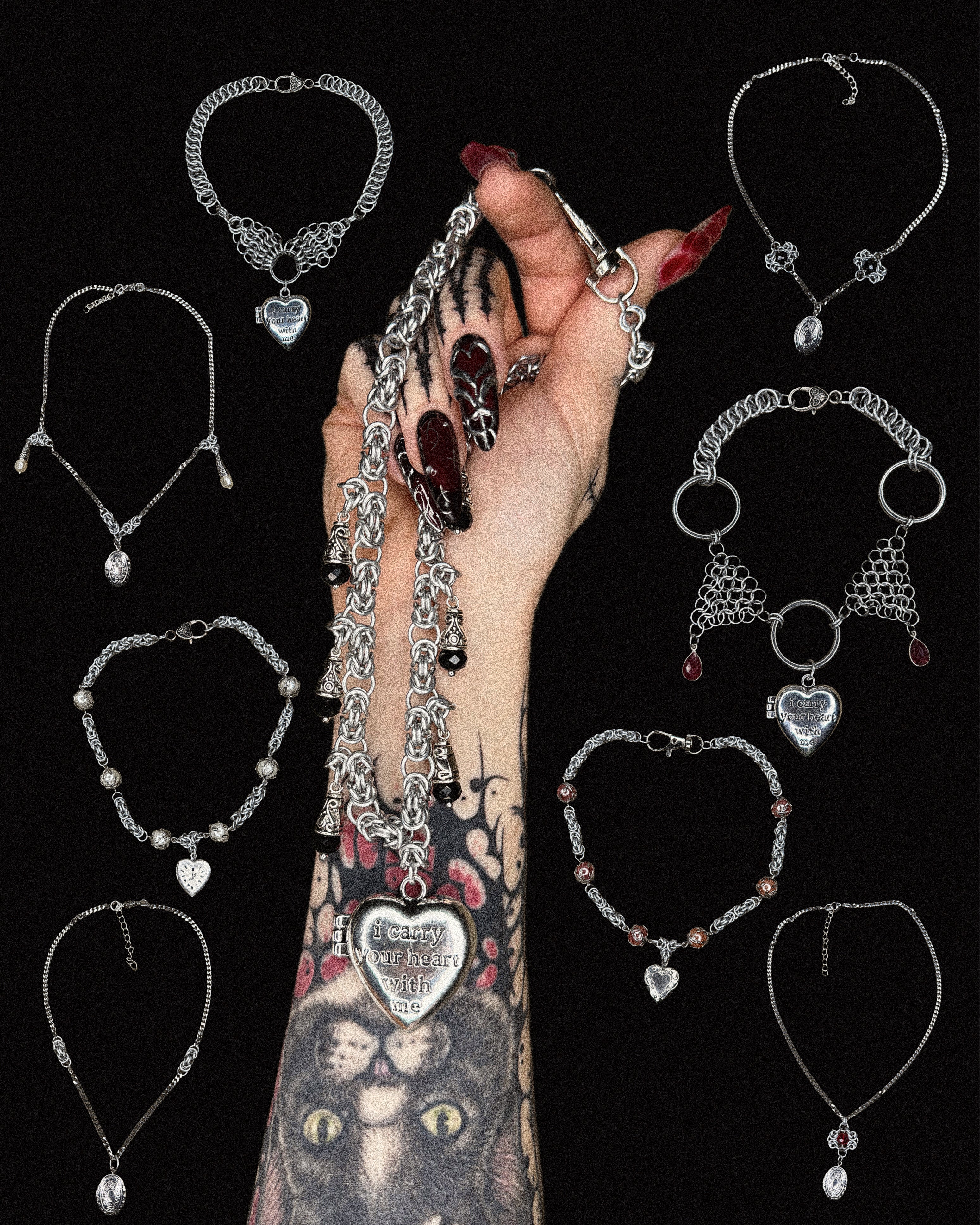 OOAK ‘I carry your heart with me” Locket Chainmail Necklace Black